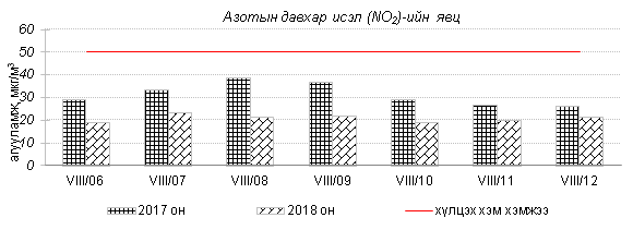 Өнгөрсөн 7 хоногийн агаарын чанарын хяналт шинжилгээний дүнгээр Улаанбаатар хотод агаарын чанар төв автозам дагуух цэгээс бусад цэгүүдэд цэвэр болон хэвийн түвшинд байна. Тээврийн хэрэгслээс голчлон ялгардаг азотын давхар исэл (NO2)-ийн 7 хоногийн дундаж агууламжийг өмнөх оны мөн үетэй харьцуулахад 32%-иар бага байсан бол 24 цагийн дундаж хамгийн их агууламж Агаарын чанарын стандартаас 1.7 дахин их байлаа. Дэлгэрэнгүйг эндээс үзнэ үү.