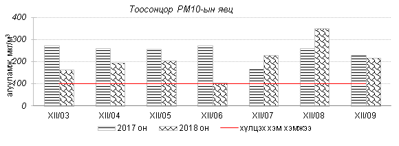Өнгөрсөн 7 хоногийн агаарын чанарын хяналт шинжилгээний дүнгээр Улаанбаатар хотын хэмжээнд агаарын чанар “Бага бохирдолтой” болон “Бохирдолтой” түвшинд байлаа. Галлагааны эрчимтэй холбоотойгоор PM2.5 тоосонцор болон хүхэрлэг хийн агууламж Баянхошуу, Зурагт, Нисэхийн гэр хороолол орчим, автозамын түгжрэлтэй холбоотой PM10 тоосонцор, азотын давхар ислийн агууламж Баруун 4 зам, 13-р хороолол орчим тус тус нэмэгдсэн байна. Дэлгэрэнгүйг эндээс үзнэ үү.