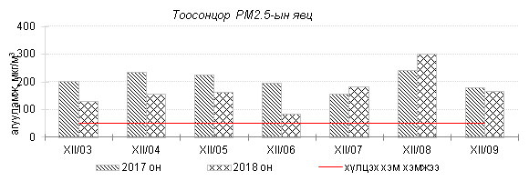 Улаанбаатар хотын агаарт түгээмэл бохирдуулах бодис хүхэрлэг хий /SO2/, азотын давхар исэл /NO2/, тоосонцор /PM10, PM2.5/, нүүрстөрөгчийн дутуу исэл /CO/, озон /O3/-ны агууламжийг тодорхойллоо.