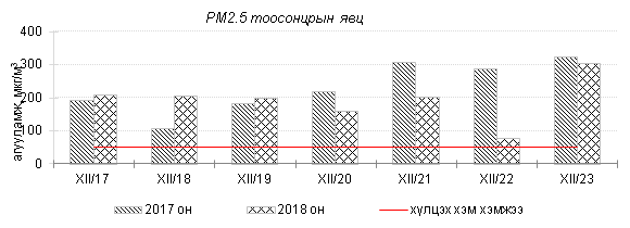 Өнгөрсөн 7 хоногийн агаарын чанарын хяналт шинжилгээний дүнгээр Улаанбаатар хотын гэр хороолол орчим бусад цэгээс хамгийн их бохирдол илэрч агаарын чанарын индексээр “Их бохирдолтой”, “Маш их бохирдолтой” түвшинд хүрсэн байна. Агаарт PM2.5, PM10 тоосонцрын агууламж хамгийн их байсан бөгөөд эдгээр тоосонцрын 24 цагийн дундаж хамгийн их агууламж Агаарын чанарын стандартаас 8-14 дахин их байлаа. Дэлгэрэнгүйг эндээс үзнэ үү.
