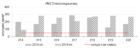 Улаанбаатар хотын агаарт түгээмэл бохирдуулах бодис хүхэрлэг хий /SO2/, азотын давхар исэл /NO2/, тоосонцор /PM10, PM2.5/, нүүрстөрөгчийн дутуу исэл /CO/, озон /O3/-ны агууламжийг тодорхойллоо.