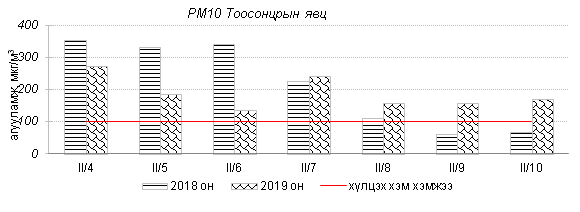 Улаанбаатар хотын агаарын чанарын хяналт шинжилгээний дүнгээр өнгөрсөн 7 хоногт агаарын чанарын индексээр “Их бохирдолтой”, “Бохирдолтой” түвшинд хүрсэн байна. Агаарт PM2.5, PM10 тоосонцрын агууламж хамгийн их байсан бөгөөд эдгээр тоосонцрын 24 цагийн дундаж хамгийн их агууламж Агаарын чанарын стандартаас 5-7 дахин их байлаа. Дэлгэрэнгүйг эндээс үзнэ үү.
