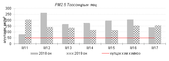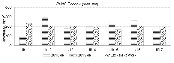 Өнгөрсөн 7 хоногийн агаарын чанарын хяналт шинжилгээний дүнгээр Зурагт Баянхошуу орчимд бусад цэгээс хамгийн их бохирдол илэрч агаарын чанарын индекс “Бохирдолтой”, “Их бохирдолтой” түвшинд хүрсэн байна. Агаарт PM2.5, PM10 тоосонцрын агууламж хамгийн их байсан бөгөөд эдгээр тоосонцрын 24 цагийн дундаж хамгийн их агууламж Агаарын чанарын стандартаас 4-6 дахин их байлаа. Дэлгэрэнгүйг эндээс үзнэ үү.