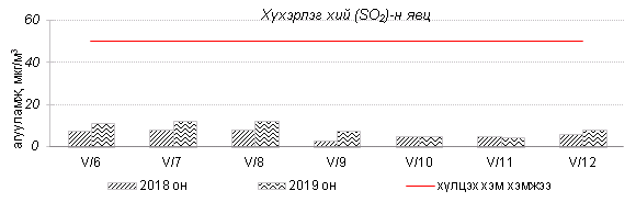 Улаанбаатар хотын агаарт түгээмэл бохирдуулах бодис хүхэрлэг хий /SO2/, азотын давхар исэл /NO2/, тоосонцор /PM10, PM2.5/, нүүрстөрөгчийн дутуу исэл /CO/, озон /O3/-ны агууламжийг тодорхойллоо.
