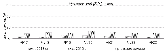 Улаанбаатар хотын агаарт түгээмэл бохирдуулах бодис хүхэрлэг хий /SO2/, азотын давхар исэл /NO2/, тоосонцор /PM10, PM2.5/, нүүрстөрөгчийн дутуу исэл /CO/, озон /O3/-ны агууламжийг тодорхойллоо.
