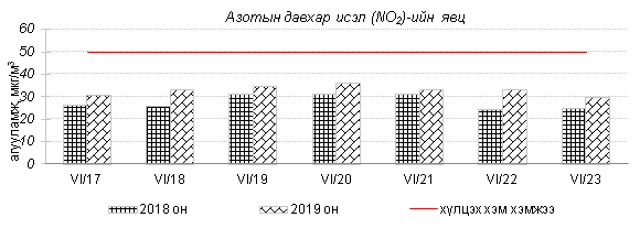 Өнгөрсөн 7 хоногийн агаарын чанарын хяналт шинжилгээний дүнгээр Улаанбаатар хотын төв автозамын зангилаа Баруун 4 зам, Бөхийн өргөө орчим азотын давхар исэл, Нисэх, Баянхошуу, Цахилгаан станц орчимд РМ10 тоосонцор “Бага бохирдолтой” түвшинд хүрсэн байна. Агаар бохирдуулах бодисуудаас PM10 тоосонцрын агууламж их илэрсэн бөгөөд 24 цагийн дундаж хамгийн их агууламж Баянхошуу орчим Агаарын чанарын стандартаас 2.8 дахин их байна. Дэлгэрэнгүйг эндээс үзнэ үү.