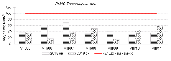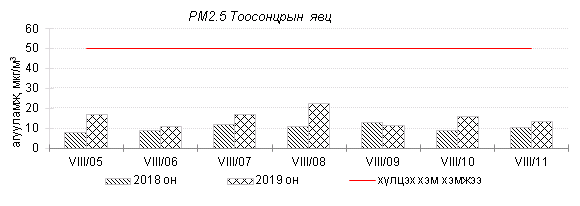 Улаанбаатар хотын агаарт түгээмэл бохирдуулах бодис хүхэрлэг хий /SO2/, азотын давхар исэл /NO2/, тоосонцор /PM10, PM2.5/, нүүрстөрөгчийн дутуу исэл /CO/, озон /O3/-ны агууламжийг тодорхойллоо.