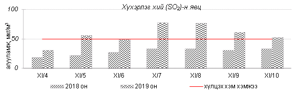 Улаанбаатар хотын агаарт түгээмэл бохирдуулах бодис хүхэрлэг хий /SO2/, азотын давхар исэл /NO2/, тоосонцор /PM10, PM2.5/, нүүрстөрөгчийн дутуу исэл /CO/, озон /O3/-ны агууламжийг тодорхойллоо.