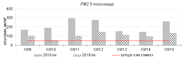 Улаанбаатар хотын агаарт түгээмэл бохирдуулах бодис хүхэрлэг хий /SO2/, азотын давхар исэл /NO2/, тоосонцор /PM10, PM2.5/, нүүрстөрөгчийн дутуу исэл /CO/, озон /O3/-ны агууламжийг тодорхойллоо.