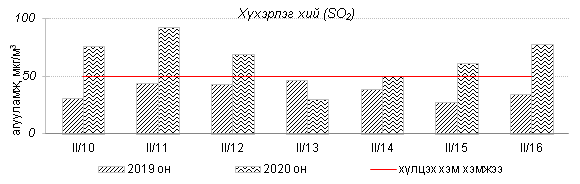 Улаанбаатар хотын агаарт түгээмэл бохирдуулах бодис хүхэрлэг хий /SO2/, азотын давхар исэл /NO2/, тоосонцор /PM10, PM2.5/, нүүрстөрөгчийн дутуу исэл /CO/, озон /O3/-ны агууламжийг тодорхойллоо.
