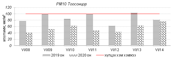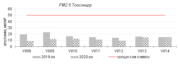 Улаанбаатар хотын агаарт түгээмэл бохирдуулах бодис хүхэрлэг хий /SO2/, азотын давхар исэл /NO2/, тоосонцор /PM10, PM2.5/, нүүрстөрөгчийн дутуу исэл /CO/, озон /O3/-ны агууламжийг тодорхойллоо.