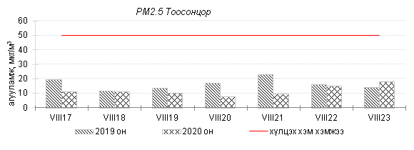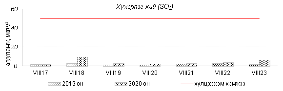 Улаанбаатар хотын агаарт түгээмэл бохирдуулах бодис хүхэрлэг хий /SO2/, азотын давхар исэл /NO2/, тоосонцор /PM10, PM2.5/, нүүрстөрөгчийн дутуу исэл /CO/, озон /O3/-ны агууламжийг тодорхойллоо.