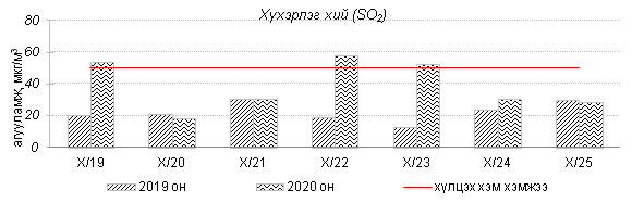Улаанбаатар хотын агаарт түгээмэл бохирдуулах бодис хүхэрлэг хий /SO2/, азотын давхар исэл /NO2/, тоосонцор /PM10, PM2.5/, нүүрстөрөгчийн дутуу исэл /CO/, озон /O3/-ны агууламжийг тодорхойллоо.