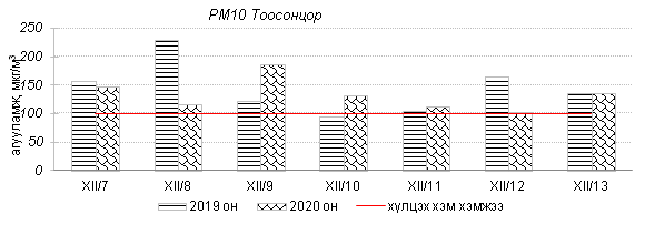 Улаанбаатар хотын агаарт түгээмэл бохирдуулах бодис хүхэрлэг хий /SO2/, азотын давхар исэл /NO2/, тоосонцор /PM10, PM2.5/, нүүрстөрөгчийн дутуу исэл /CO/, озон /O3/-ны агууламжийг тодорхойллоо.