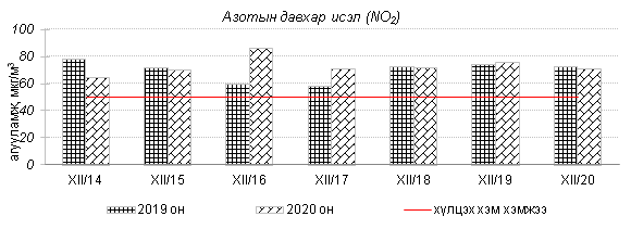 Улаанбаатар хотын агаарт түгээмэл бохирдуулах бодис хүхэрлэг хий /SO2/, азотын давхар исэл /NO2/, тоосонцор /PM10, PM2.5/, нүүрстөрөгчийн дутуу исэл /CO/, озон /O3/-ны агууламжийг тодорхойллоо.