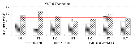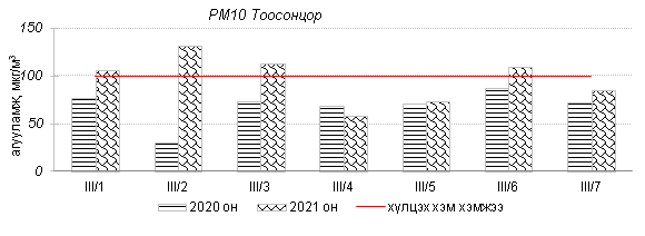 Улаанбаатар хотын агаарт түгээмэл бохирдуулах бодис хүхэрлэг хий /SO2/, азотын давхар исэл /NO2/, тоосонцор /PM10, PM2.5/, нүүрстөрөгчийн дутуу исэл /CO/, озон /O3/-ы агууламжийг тодорхойллоо.