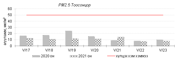 Улаанбаатар хотын агаарт түгээмэл бохирдуулах бодис хүхэрлэг хий /SO2/, азотын давхар исэл /NO2/, тоосонцор /PM10, PM2.5/, нүүрстөрөгчийн дутуу исэл /CO/, озон /O3/-ы агууламжийг тодорхойллоо.