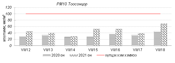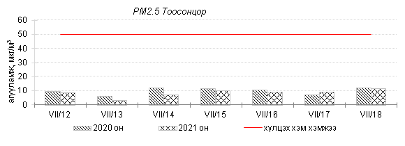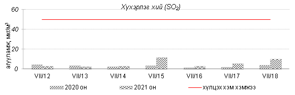 Улаанбаатар хотын агаарт түгээмэл бохирдуулах бодис хүхэрлэг хий /SO2/, азотын давхар исэл /NO2/, тоосонцор /PM10, PM2.5/, нүүрстөрөгчийн дутуу исэл /CO/, озон /O3/-ы агууламжийг тодорхойллоо.